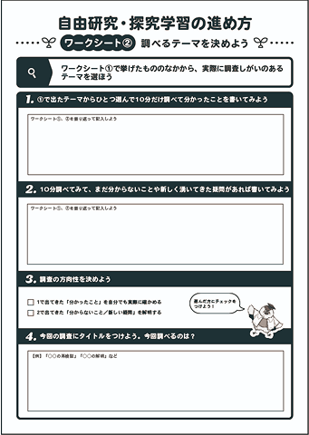 選んだテーマについて、軽く下調べをしてみましょう。そして、「調べたらわかったこと」と「まだわからないこと」を整理しましょう。